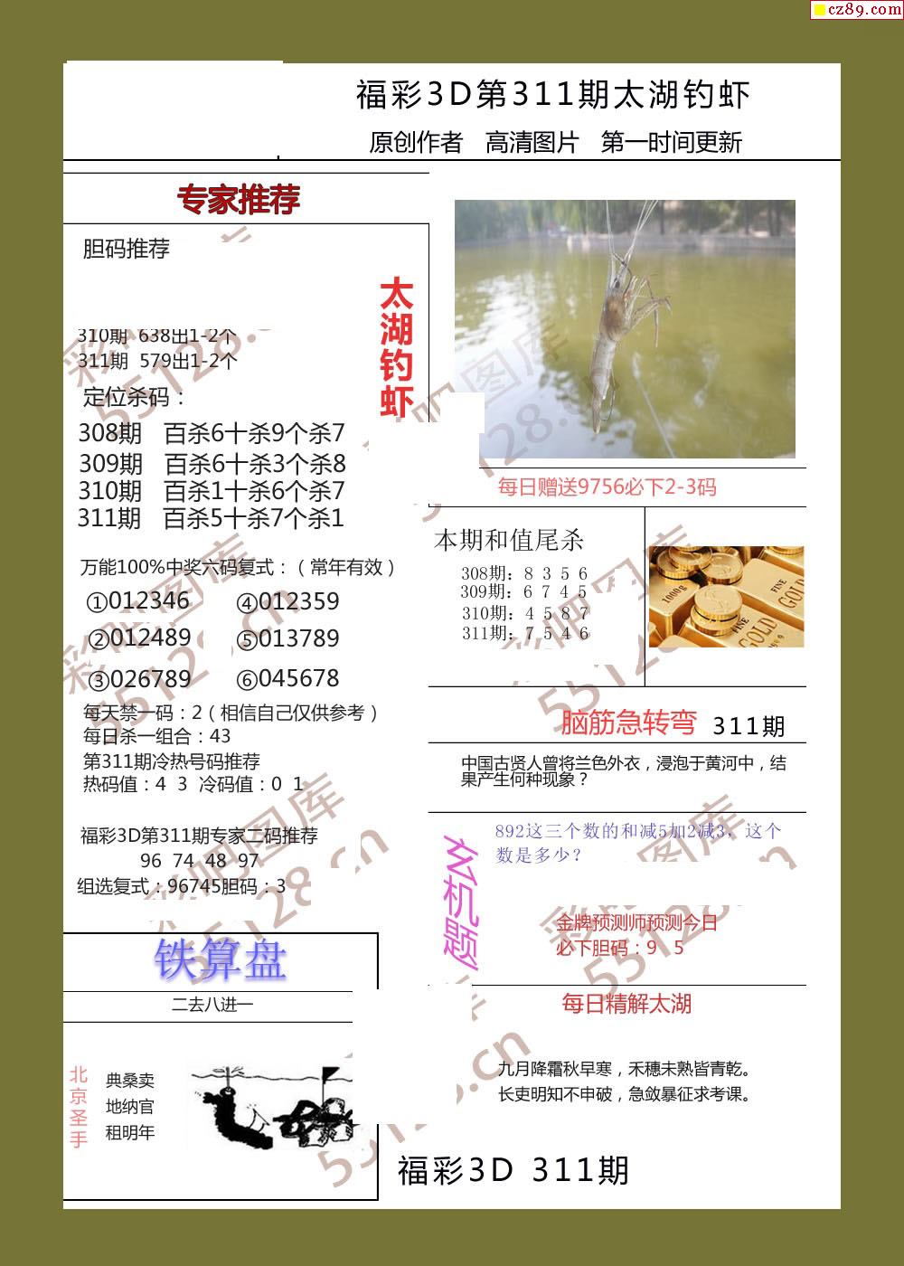 25年311期福彩铁算盘3d画谜